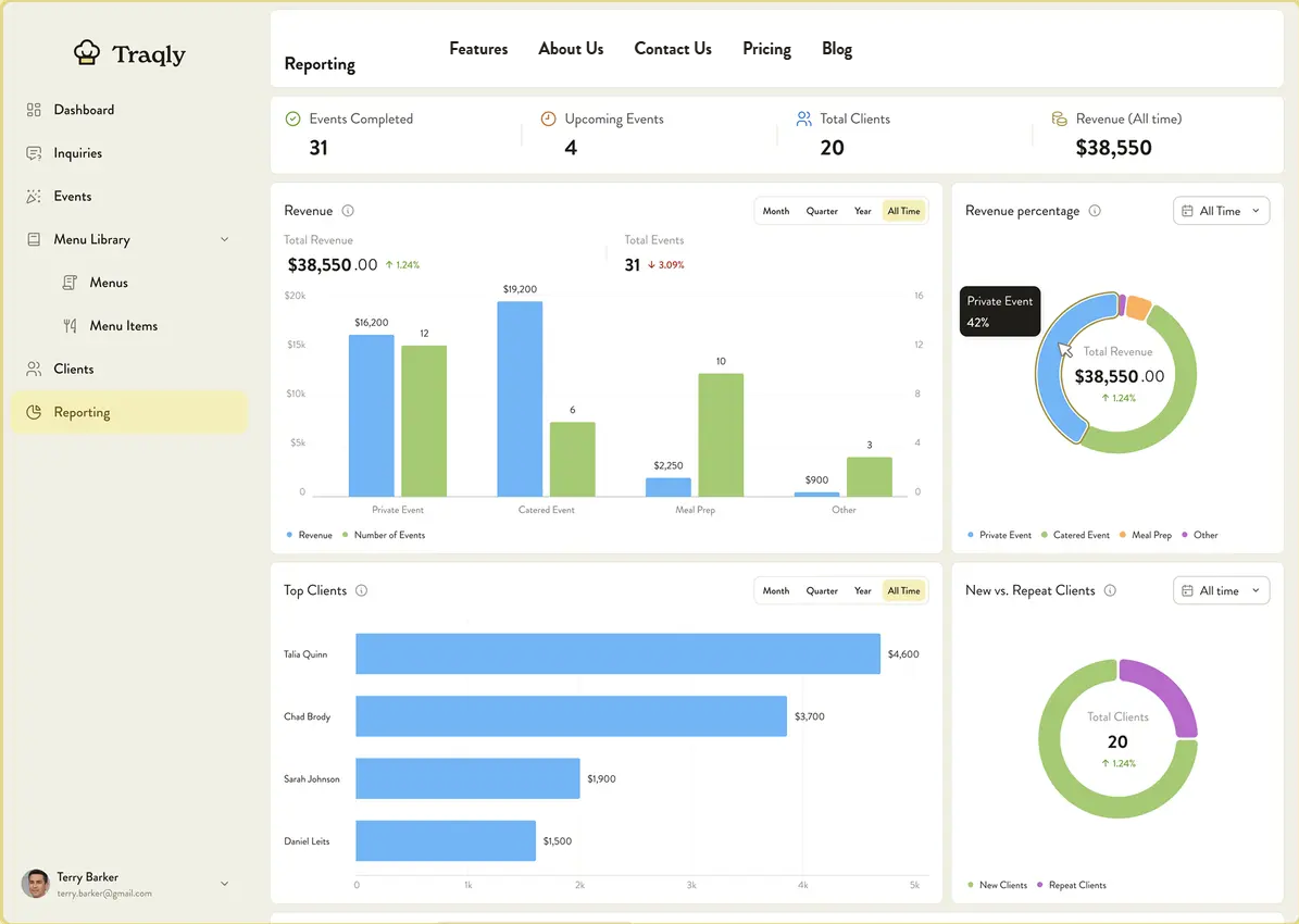 Chefs should know which events do best for them, which are worth it and which aren’t. And they should know this immediately, not within weeks. Software should make it easy to understand your revenues at a glance.